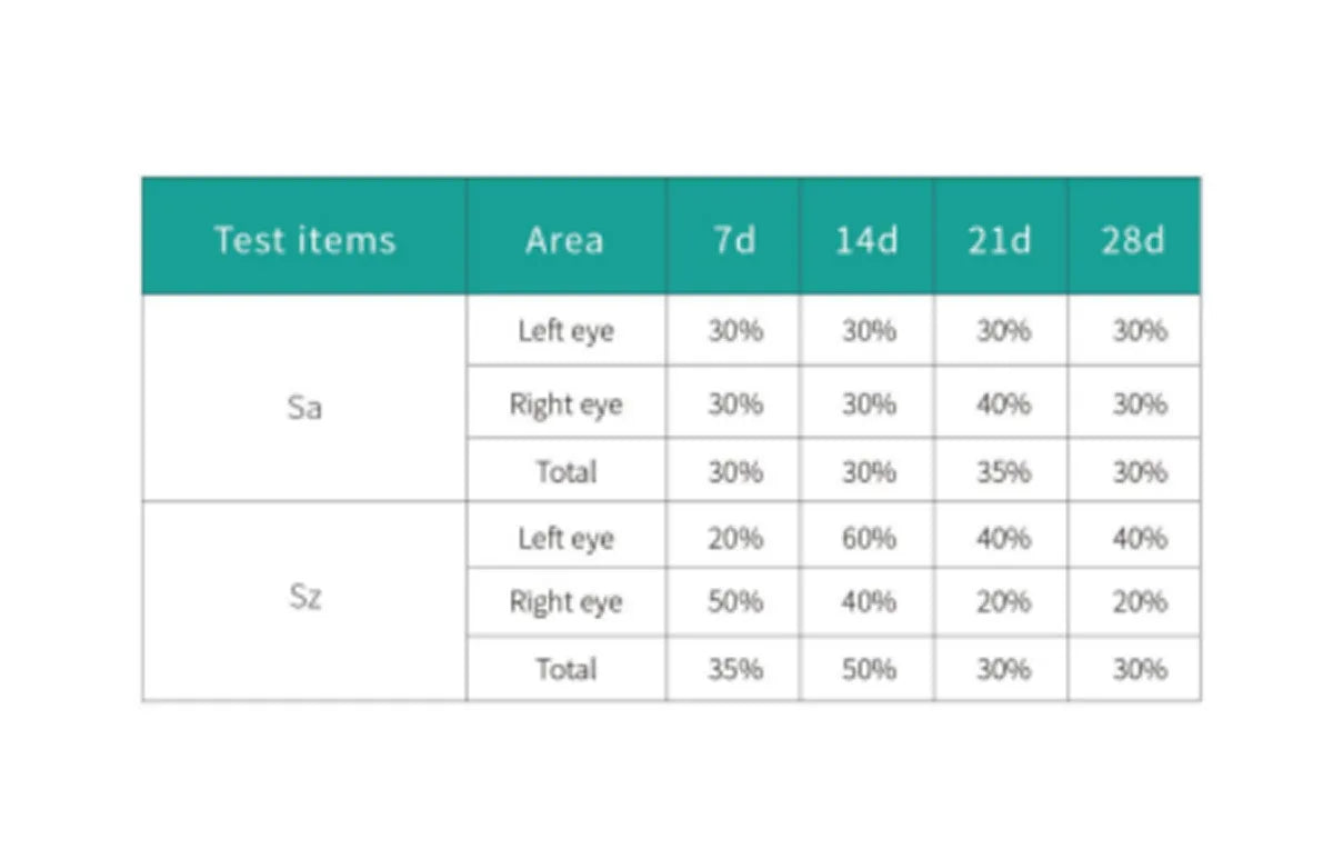 - Wrinkle Roughness (Sa): 30-35% reduction over 28 days