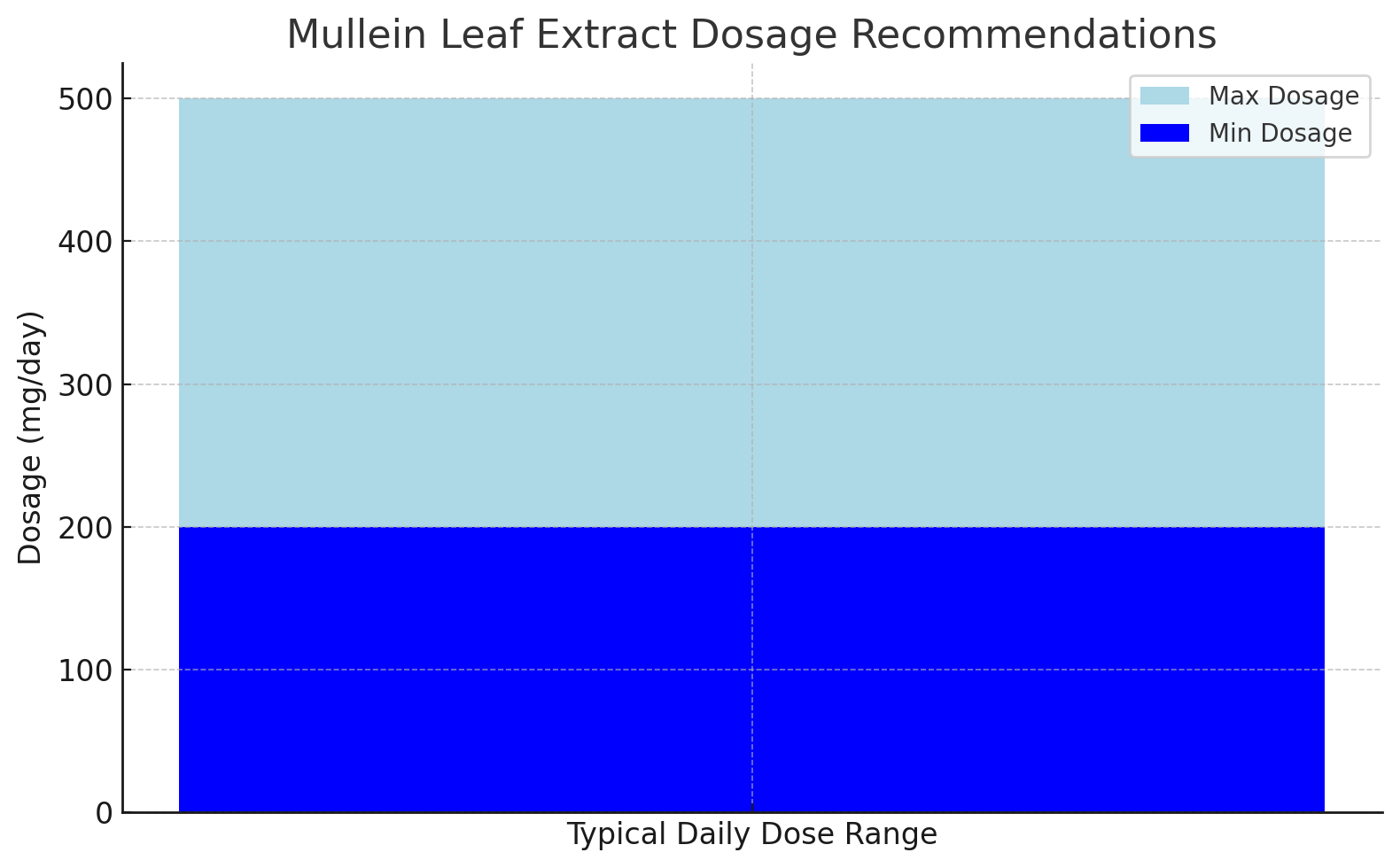 The typical daily dose of mullein leaf extract ranges from 300 mg to 1000 mg, depending on the form and purpose of use. It's best to follow the dosage instructions on the product label or consult a healthcare professional for personalized advice.