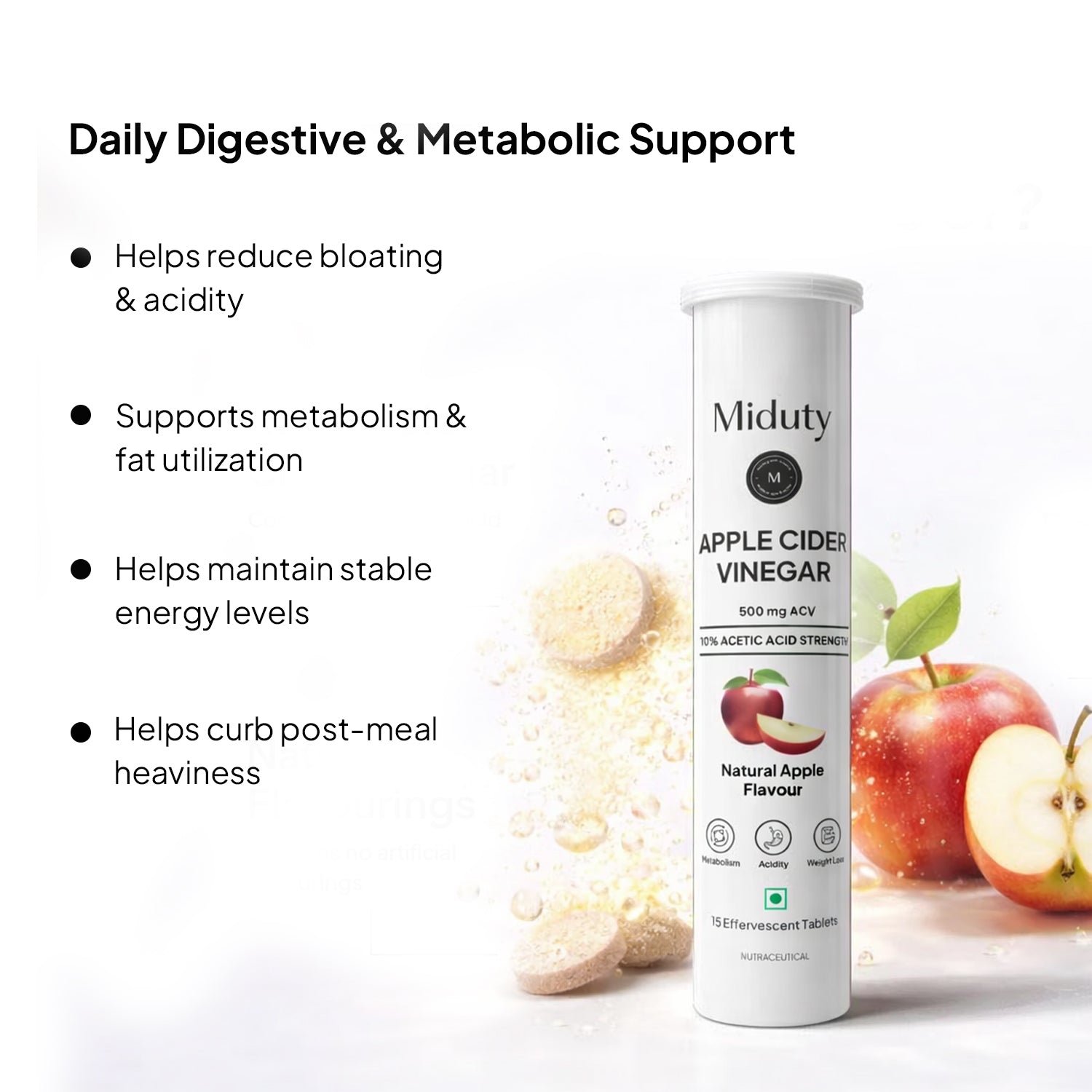 Struggling with sugar cravings, post-meal crashes, or stubborn weight despite dieting and workouts? Miduty’s high-potency ACV effervescent is designed to support appetite, metabolism, and digestion—not starvation.