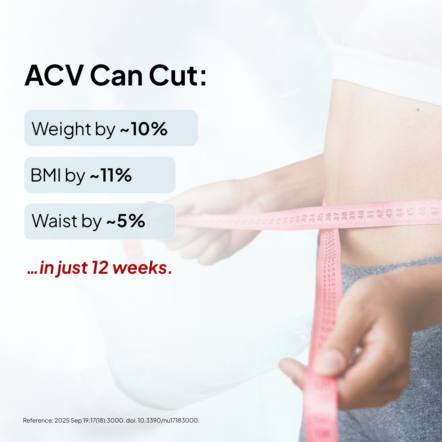 Rich in acetic acid, ACV helps improve insulin sensitivity, reduce post-meal blood sugar spikes, and support fat metabolism by activating metabolic pathways like AMPK, making it useful for weight and glucose management.