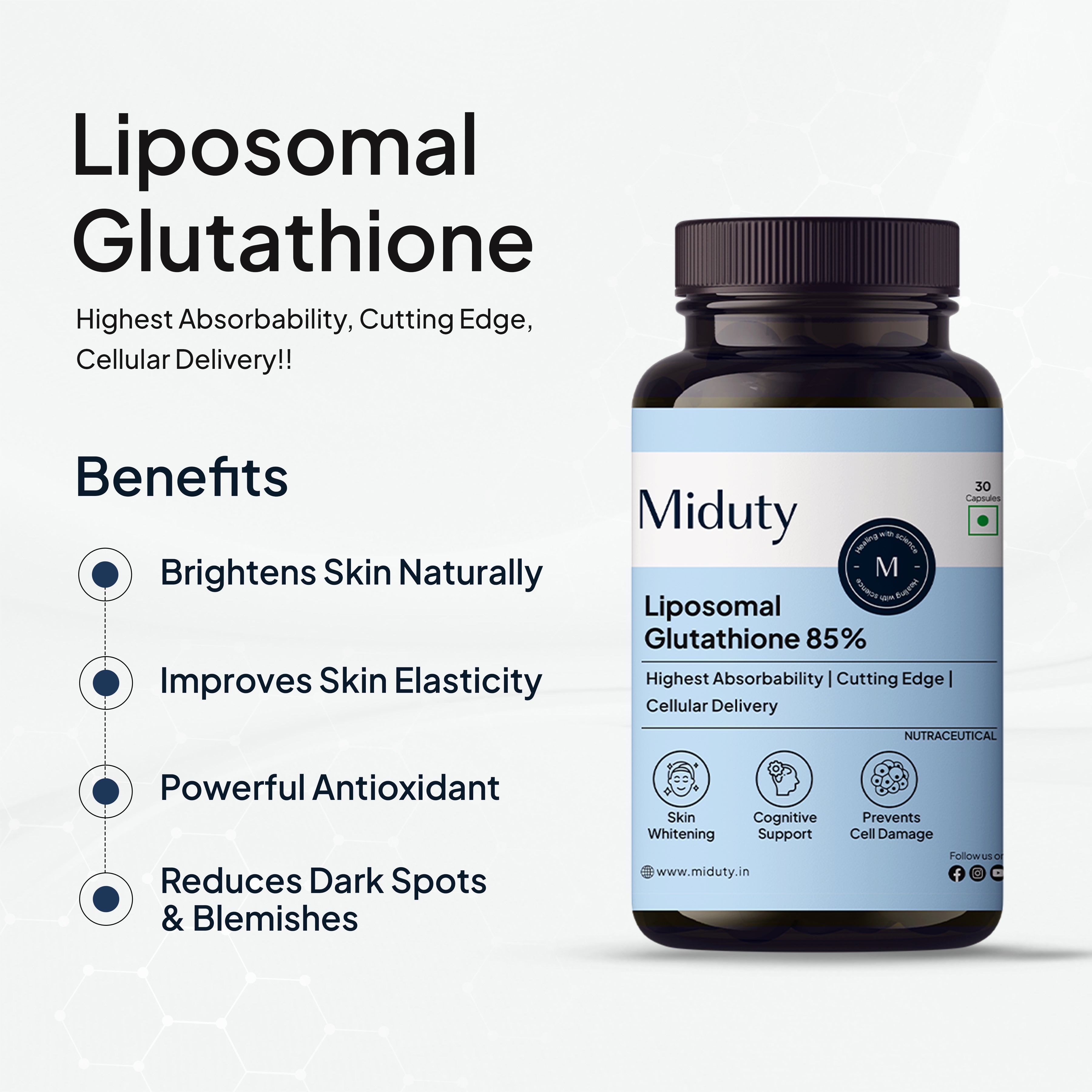Glutathione 85% is a powerful antioxidant that helps detoxify the body, reduce oxidative damage, and strengthen the immune system. It also promotes healthy skin by neutralizing free radicals and enhancing skin radiance.