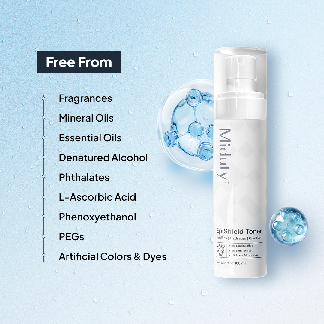 Miduty EpiShield Toner on the other hand is designed with a powerful TRIPLE ACTION DEFENCE SYSTEM that performs 3 functions:
