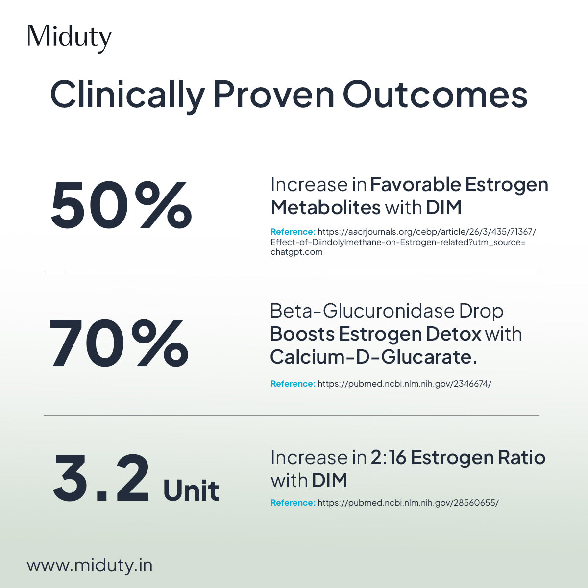 At the same time, Miduty Estrogen Balance uses DIM, Calcium‑D‑Glucarate, and Chasteberry to support healthy estrogen metabolism—a key step in reducing symptoms of estrogen dominance like irregular periods, hormonal acne, fibroids, and unexplained weight gain.