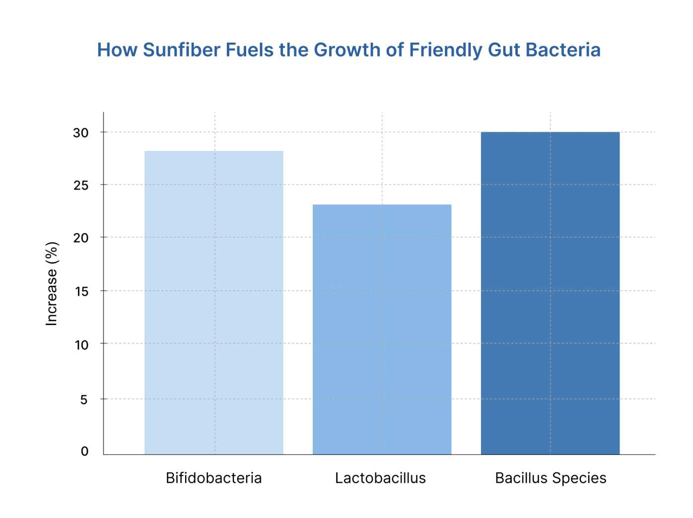 In adult and pediatric trials, PHGG improved stool frequency and consistency and reduced GI discomfort and bloating. [5] By feeding beneficial gut bacteria (and our probiotic strains) with fermentable fiber, Sunfiber enhances the growth of commensals and the production of short-chain fatty acids (SCFAs).