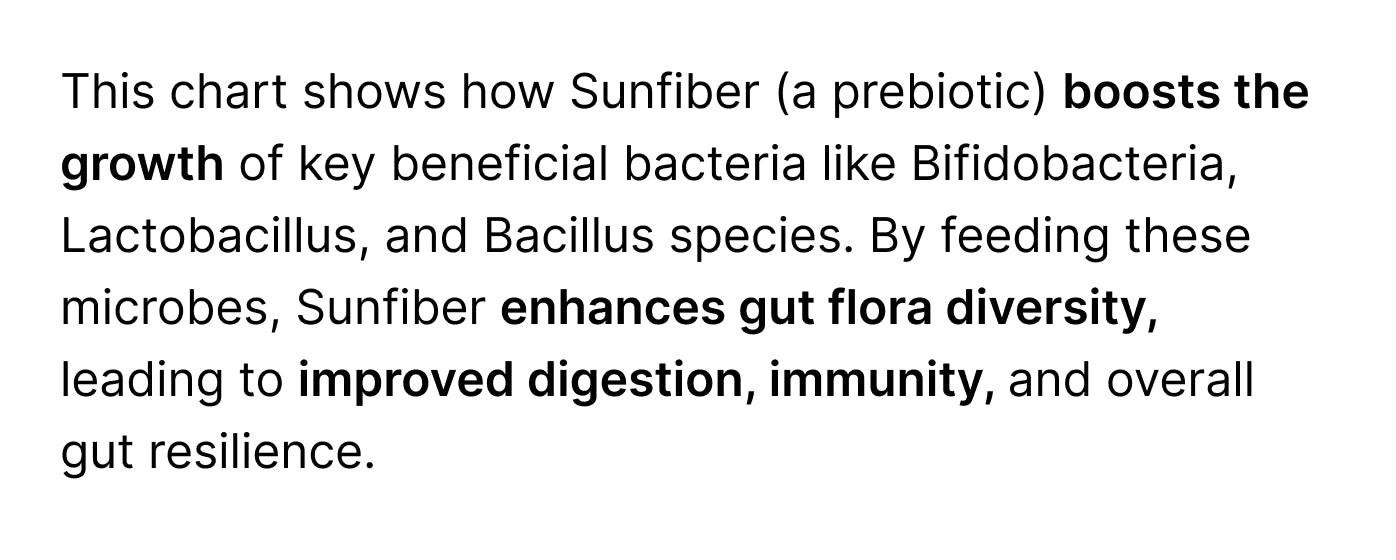 Prebiotic (Sunfiber) fuels beneficial bacteria, helping the microbiome recover more rapidly after insult.