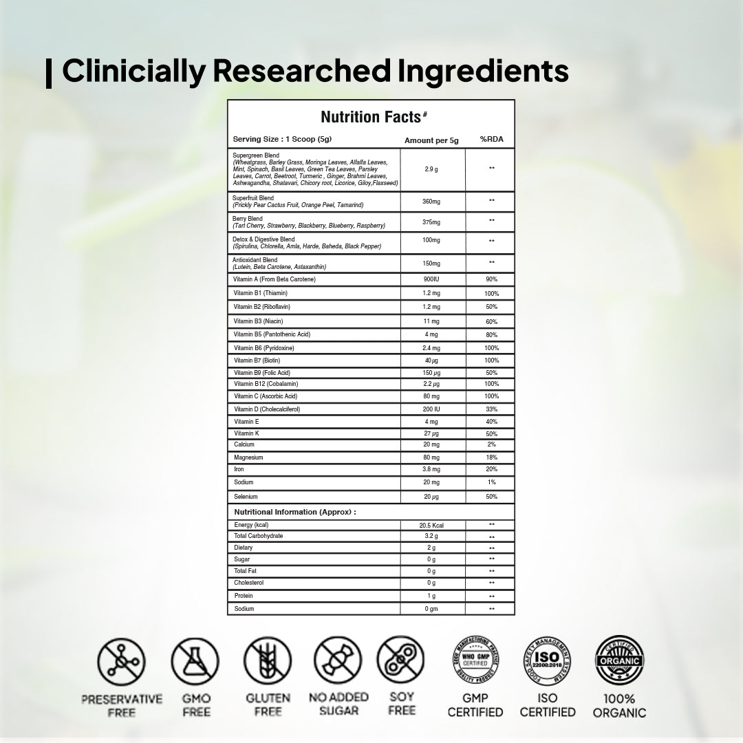 In today's fast-paced life, getting enough greens can be challenging. That's why we've carefully crafted this nutrient-rich formula to help you bridge nutritional gaps, support immunity, and boost energy levels, all in a single scoop. Elevate your health effortlessly and feel the difference with Miduty SuperGreens!